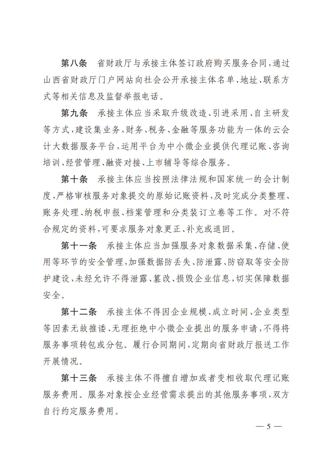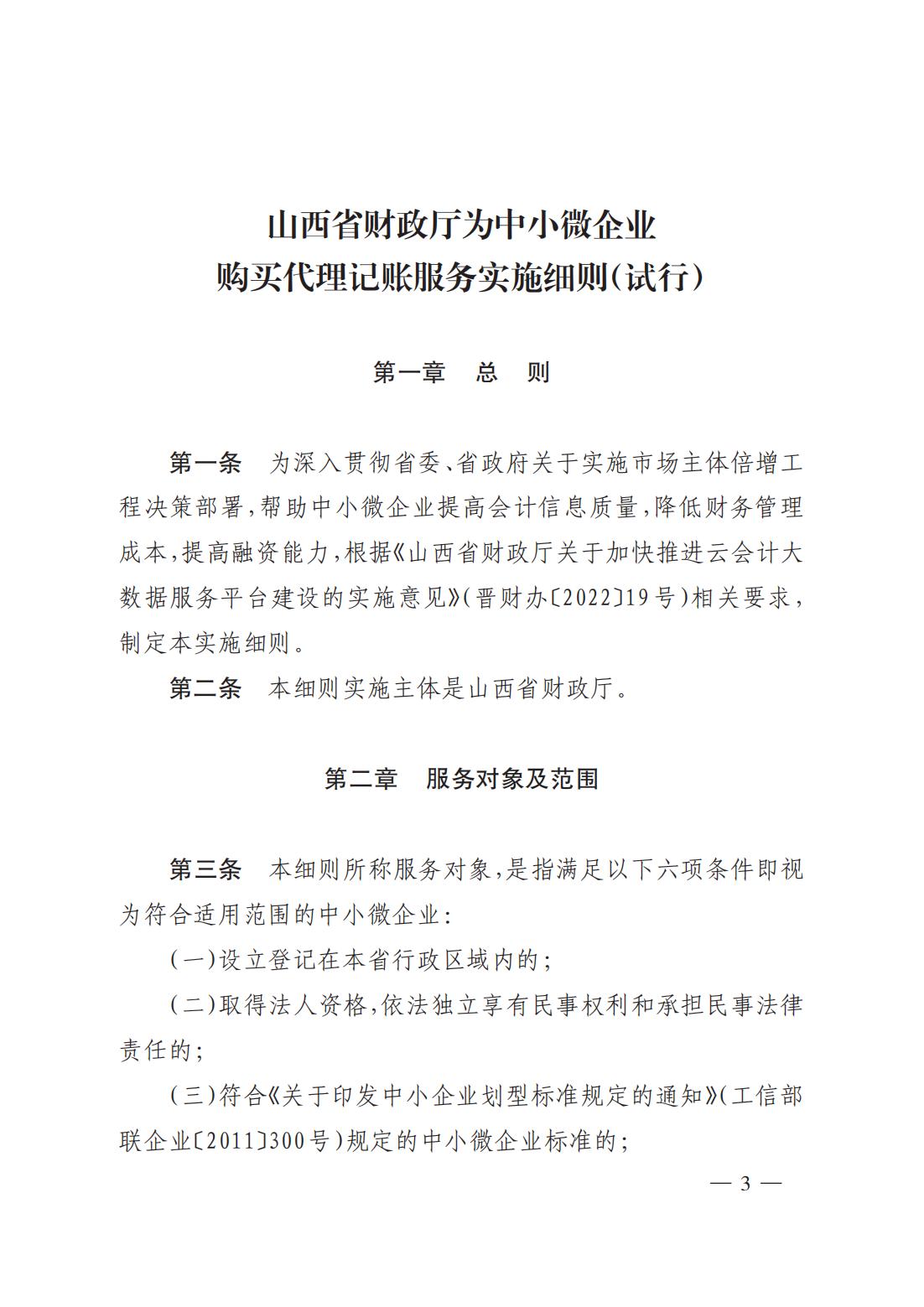 山西省財(cái)政廳為中小微企業(yè)購買代理記賬服務(wù)實(shí)施細(xì)則(試行)
